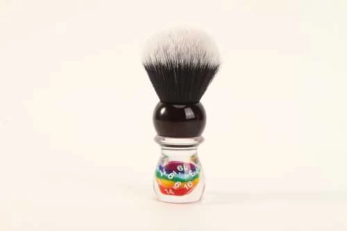 Yaqi brushes have a worldwide reputation for their high quality cast resin handles, and high quality synthetic knots. The handles have good weight, and feel great in the hand. The knots have super soft tips, with enough backbone in teh shafts to whip a smooth tight lather.