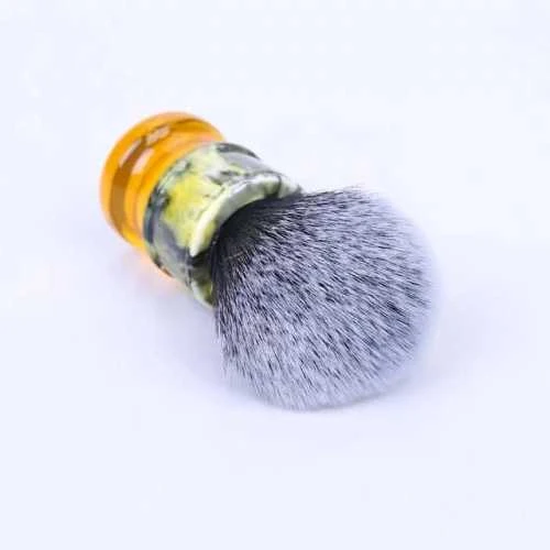 Yaqi brushes have a worldwide reputation for their high quality cast resin handles, and high quality synthetic knots. The handles have good weight, and feel great in the hand. The knots have super soft tips, with enough backbone in teh shafts to whip a smooth tight lather.